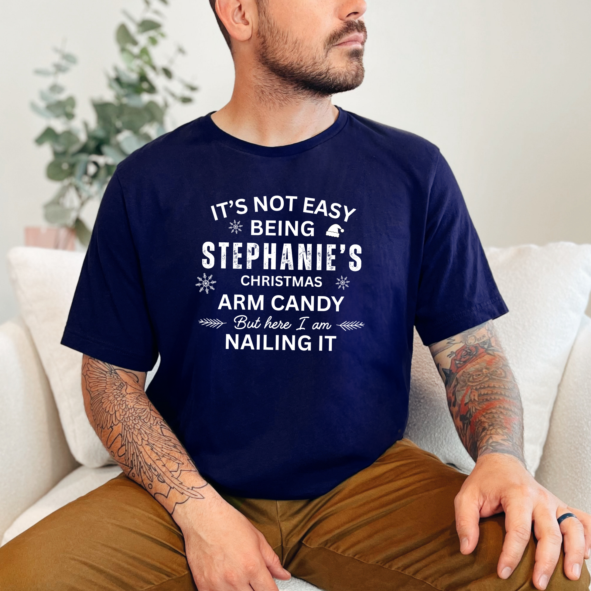Show off your holiday confidence with this hilarious customizable Christmas shirt! Perfect for proud partners who love being the season’s “arm candy,” this tee makes a great gift, photo outfit, or party conversation starter. Comfortable, festive, and fully personalizable with any name—nailed it!